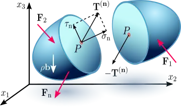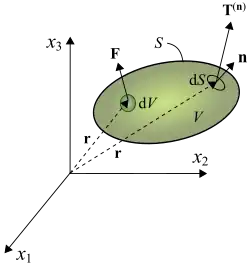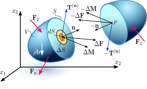 Когда тело находится в равновесии, компоненты тензора напряжений в каждой точке тела удовлетворяют уравнениям равновесия: