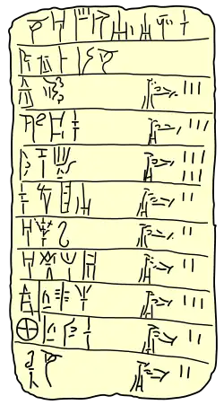 .1 jo-do-so-si , ko-re-te-re , du-ma-te-qe , .2a -e-we-qe .2b po-ro-ko-re-te-re-qe , ka-ra-wi-po-ro-qe , o-pi-su-ko-qe , o-pi-ka-pe- .3 ka-ko , na-wi-jo , pa-ta-jo-i-qe , e-ke-si-qe , a3-ka-sa-ma .4 pi-*82 , ko-re-te , AES M 2 po-ro-ko-re-te AES N 3 .5 me-ta-pa , ko-re-te AES M 2 po-ro-ko-re-te AES N 3 .6 pe-to-no , ko-re-te AES M 2 po-ro-ko-re-te AES N 3 .7 pa-ki-ja-pi , ko-re-te AES M 2 po-ro-ko-re-te AES N 3 .8 a-pu2-we , ko-re-te AES M 2 po-ro-ko-re-te AES N 3 .9 ạ-ke-re-wa , ko-re-te AES M 2 po-ro-ko-re-te AES N 3 .10 ṛọ-ụ-so , ko-re-te AES M 2 po-ro-ko-re-te AES N 3 .11 ḳạ-ra-do-ro , ko-re-te AES M 2 po-ro-ko-re-te AES N 3̣ .12 ri-]j̣ọ , ko-re-te AES M 2 po-ro-ko-re-te AES N 3 .13 ṭị-mi-to-a-ke-e , ko-re-te AES M 2 po-ro-ko-re-te AES N 3 .14 ra-]wa-ra-ta2 , ko-re-te AES M 2 N 3 po-ro-ko-re-te AES N 3 .15 sa-]ma-ra , ko-re-te AES M 3 N 3 po-ro-ko-re-te N 3 .16 a-si-ja-ti-ja⌞⌟ḳọ-re-te AES M 2 po-ro-ko-re-te N 3 .17 e-ra-te-re-wa-pi , ko-re-te AES M 2 po-ro-ko-re-te N 3 .18 za-ma-e-wi-ja ,̣ ḳọ-re-te AES M 3 N 3̣ po-ro-ko-re-te N 3 .19 e-re-i , ko-re-te AES M 3 N 3̣ po-ro-ko-re-te N 3 .20 vacant .21 vacant .22 vacant .23 vacant |