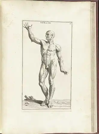 Основоположниками научной анатомии в целом и миологии в частности стали Леонардо да Винчи и Андреас Везалий, одними из первых начавшие вскрывать трупы для исследования и описания строения человеческого тела. Перу Леонардо да Винчи принадлежит множество подробных анатомических зарисовок мышц и их описаний при различных состояниях тела, Везалий осуществил систематическое изложение описательной анатомии мышц в своём труде «О строении человеческого тела». Веком позже врач и анатом Томас Виллис (Виллизий) впервые описал миофибриллы и их роль в мышечном сокращении. Хирург и анатом Николай Иванович Пирогов, в числе прочих трудов по топографической анатомии, заложил основу учения о топографии фасций как о вспомогательном аппарате мышечной и сосудистой систем. Пётр Францевич Лесгафт и его последователи разрабатывали направление функциональной миологии, изучая роль среды и физических упражнений в развитии организма, характер изменений в мышцах и костях при физических нагрузках и т.д. Физиолог Иван Михайлович Сеченов выдвинул концепцию мышечной чувствительности (проприоцепции)[3].