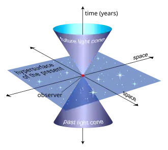 - Световой конус данного события формируется всеми событиями, которые могут быть связаны через световые лучи с этим событием. Когда мы наблюдаем ночное небо, мы, по сути, видим только световой конус прошлого во всем пространстве-времени.