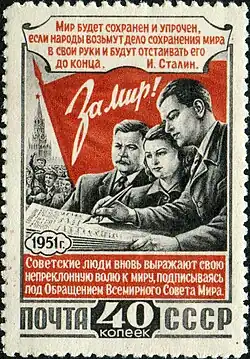 Почтовая марка 1951 года с началом текста Стокгольмского воззвания.
