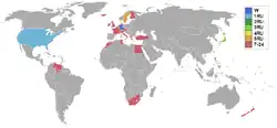 Страны и территории, участвовавшие в конкурсеТоп 6 (слева направо): представительницы Швеции, Израиля, ФРГ, США, Японии и Дании