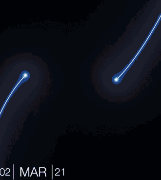 Движение звёзд по дням вблизи сверхмассивной чёрной дыры Стрелец A*. Внизу справа для сравнения показан размер орбиты Нептуна