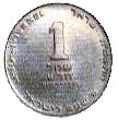 1 прута | 21 | 1,3 | Аверс: якорь; текст «Израиль» на иврите и арабском языке; Реверс: цифра «1»; текст «прута» на иврите; две стилизованных ветви оливы по кругу. |