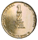 1⁄2 шекеля | 20 | 3 | Аверс: рычащий лев; герб Израиля; текст «Израиль» на иврите, арабском и английском языках; Реверс: цифра «1/2»; текст «шекель» и год выпуска на иврите; две декоративные восьмиконечные звезды. |