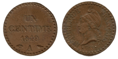 | 1 сантим 1848. Дизайнер Агустин Дюпре | ||||||||||||