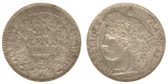| 20 сантимов 1863. Дизайнер Жан-Жак Барре | ||||||||||||