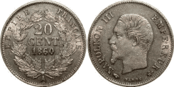 | 1853 | Серебро | 5 г | 23 мм | 1853 — 1866 | рубчатый | Номинал | Наполеон III | Всего выпущено: — 25 946 691 шт. |