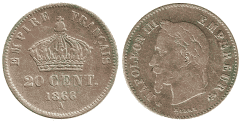 | 20 сантимов 1866. Дизайнер Жан-Жак Барре | ||||||||||||