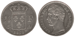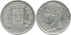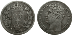 | 1825 | Серебро | 10 г | 27 мм | 1825 — 1830 | рубчатый | Номинал | Карл X | Всего выпущено: — 4 041 358 шт. |