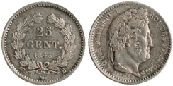 | 25 сантимов 1845. Дизайнер Жозеф Франсуа Домар | ||||||||||||