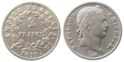 | 1800 | Серебро | 2 г | 18 мм | 1800 — 1816 | рубчатый | Номинал | Наполеон I | Всего выпущено: — 5 видов монет |