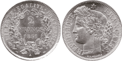 | 2 франка 1849. Дизайнер Андре Одине | ||||||||||||
