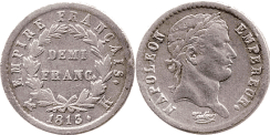| 1800 | Серебро | 1 г | 15 мм | 1800 — 1817 | рубчатый | Номинал | Наполеон I | Всего выпущено: — 5 видов монет |