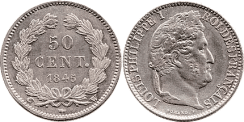 | 50 сантимов 1845. Дизайнер Жозеф Франсуа Домар | ||||||||||||
