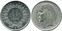 | 50 сантимов 1853. Дизайнер Жан Жак Барре | ||||||||||||