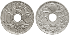 | 10 сантимов 1938. Дизайнер Эдмон-Эмиль Линдайё | ||||||||||||