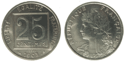| 25 сантимов 1903. Дизайнер Анри Пати | ||||||||||||