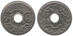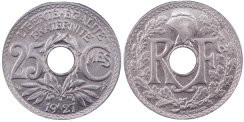 | 25 сантимов 1937. Дизайнер Эдмон-Эмиль Линдайё | ||||||||||||