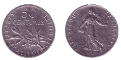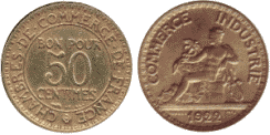 | 50 сантимов 1920. Дизайнер Жозеф Франсуа Домар | ||||||||||||