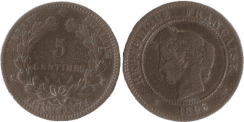 | 1871 | Бронза | 5 г | 25 мм | 1871—1897 | рубчатый | Номинал | Республика | Всего выпущено: — 73 768 693 шт. |