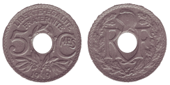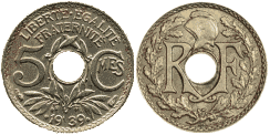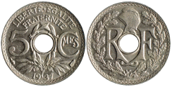 | 5 сантимов 1938. Дизайнер Эдмон-Эмиль Линдайё | ||||||||||||
