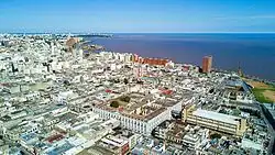 Старый Монтевидео, примыкающий к порту, построен по регулярному плану в XVIII — начале XIX века. Здесь, на главной площади города, находятся богато украшенный кафедральный собор, который сочетает в себе черты барокко и классицизма (1790—1804), и дома колониального периода с внутренними дворами. К западу от порта расположился промышленный и рабочий район Монтевидео — Вилья-дель-Серро. Прямоугольная сеть его улиц со стороны залива Ла-Плата ограничена холмом Серро, который дал название городу: Монтевидео — в переводе на русский язык означает «я вижу холм». На холме возвышается форт, построенный в 1809—1839 годах.
