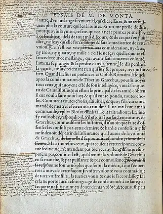 Шекспир полон реминисценций из Монтеня, Паскаль и Декарт спорили с ним, Вольтер его защищал; о нём писали, на него ссылались полемически или одобрительно, Бэкон, Гассенди, Мальбранш, Боссюэ, Бейль, Монтескьё, Дидро, Руссо, Ламетри, Пушкин, Герцен, Толстой[7].