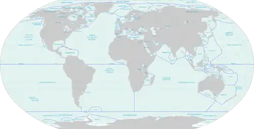 Разделение Мирового океана на отдельные океаны проведено Международной гидрологической организацией (IHO) в 1953 году (с последующими изменениями)[7]