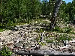 - Конечные морены — образование поперечной насыпи обломков на участке максимального распространения ледника. Часто являются естественной причиной образования водоёмов ледникового происхождения.