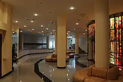 Центр создан на базе кинотеатра «Украина». Проект представляет собой комплексное решение фасадов и интерьеров зрительных залов и фойе с использованием современных материалов и конструкций. Интерьеры выполнены в едином стиле с фасадной частью культурного центра. Основной акцент решения фасадов — корона над главным входом в стиле «Русского кокошника». Яркая роспись короны, с включением золотой смальты, активно организующая пространство вокруг театра в дневное время; в ночное время дополняется динамической подсветкой главного фасада. Боковые фасады лаконичным спокойным решением дополняют главный фасад. Ядром композиции входной группы является классический витраж с подсветкой, выполненный с использованием элементов русского орнамента. Другие элементы интерьера (колонны, стены) — нейтральны по отношению к витражу.