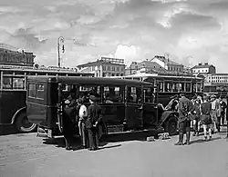 Первый автобусный маршрут в черте Москвы (Тверская застава — Каланчёвская площадь) был открыт 8 августа 1924 года[7]. На линии работали в основном английские машины «Лейланд», способные перевозить только 28 пассажиров. Позднее выпуск аналогичных машин был налажен в Ярославле и на ЗИСе. В 1920—1930-е годы активно развивалась маршрутная сеть, но, тем не менее, вплоть до 1950-х автобус играл очень незначительную роль в перевозках (около 8 %).