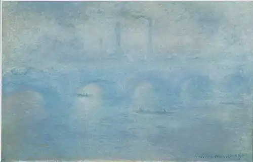 Мост Ватерлоо, туман, фр. Waterloo Bridge, brouillard. 65 × 81 см. Справа внизу подпись: Claude Monet. Современное местонахождение неизвестно.Находилась в собственности сына художника Мишеля Моне[30].