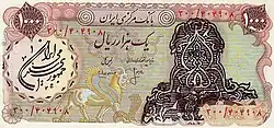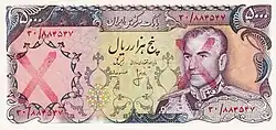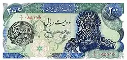 В 1980 году зачёркивание ненавистного новой власти шаха-«западника» было признано недостаточным. Так как в Центральном банке Ирана оставались большие запасы отпечатанных, но ещё не выпущенных в обращение банкнот образца 1974 года, портрет Пехлеви начали закрывать вычурным чёрным рисунком, повторяющим его силуэт.
