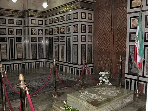 Президент Египта Анвар Садат объявил национальный траур и распорядился провести государственные похороны[41]. В траурном шествии через Каир рядом с семьёй Пехлеви приняли участие Анвар Садат, Ричард Никсон и Константин II, король Греции[42]. Похоронен последний шахиншах Ирана в каирской мечети ар-Рифаи рядом с шурином — предпоследним королём Египта Фаруком I.