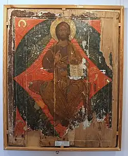 | «Спас в славе», середина XVI века, дерево, левкас, село Проминь | «Юрий Змееборец с житием», Волынский иконописец 1630 года, дерево, левкас, село Боблы | «Спас Вседержитель», Иов Кондзелевич, конец XVII века, дерево, левкас, село Городище |