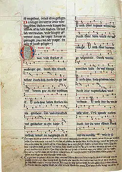 - линейная (в том числе квадратная и готическая, точно фиксирующие высоту). Особенно значима историческая форма линейной нотации — мензуральная, фиксирующая и высоту и ритм, преимущественно для записи многоголосия в средневековой и ренессансной музыке Европы. Иногда в качестве отдельной системы нотации выделяют модальную нотацию XII—XIII веков, которая является предформой мензуральной. Наибольшее распространение в профессиональной музыке и в элементарном музыкальном образовании получила пятилинейная круглая тактовая нотация, установившаяся в Европе в XVII—XVIII веках;