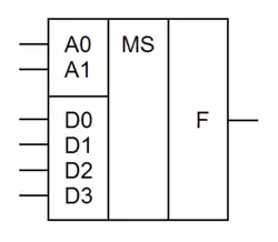 Мультиплексоры на схемах обозначают аббревиатурой MUX (от англ. multiplexer), а также MS (от англ. multiplexer selector).