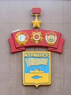 В 1971 году за успехи, «достигнутые трудящимися города в выполнении заданий по развитию промышленного производства», город награждён орденом Трудового Красного Знамени. В 1982 году за мужество и стойкость, проявленные жителями в борьбе с немецкими захватчиками в годы Великой Отечественной войны, успехи, достигнутые в хозяйственном и культурном строительстве, город награждён орденом Отечественной войны I степени. 6 мая 1985 года за выдающиеся заслуги в Великой Отечественной войне городу Мурманску присвоено звание «Город-герой» с вручением высшей награды Советского Союза ордена Ленина и медали «Золотая Звезда»[57][58].