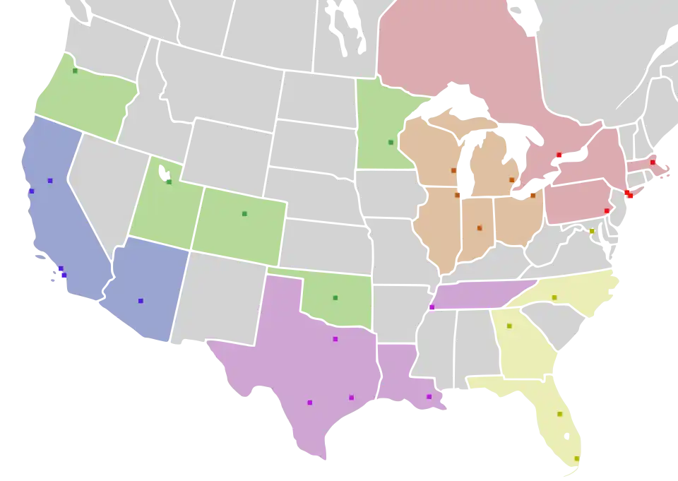 | Дивизион | Команда | Город | Арена | Основан | в НБА | Количество титулов | |
