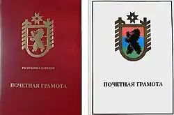 5. Почётная Грамота Республики Карелия, учреждена в 1994 году (являлась высшей государственной наградой до 1 января 2019 года)