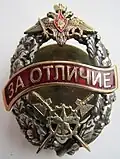 - ↑ А. Хрусталёв. Новая награда спецстроя России // Цейхгауз : журнал. — М., 2002. — Вып. 20, № 4. — С. 47.