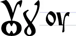 В допетровские времена в словах «Русь» и «Русия» писалась лигатура «оук»: , которая напоминает греческую гамму «γ», но с «ушком» внизу, что произносится как «у». Аналогичное прочтение присутствует в древних славянских текстах и на ранних монетах — Рyci, Рycи, Русiи, Роуси, Роусiи.