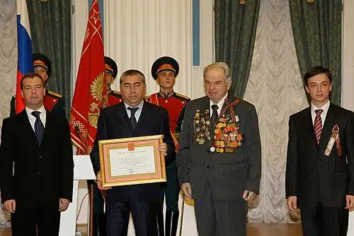 - ↑ Указ Президента Российской Федерации от 25 марта 2010 года № 340 «О присвоении городу Нальчику почётного звания Российской Федерации „Город воинской славы“». Дата обращения: 30 июля 2011. Архивировано из оригинала 22 июня 2011 года.