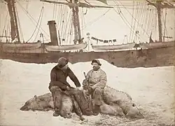 Достигнув фьордов западного побережья Гренландии, в частности Амераликфьорда, Нансен и Свердруп отделились от остальной команды, соорудили импровизированную лодку и попытались найти помощь. Члены экспедиции воссоединились только 11 октября. Ещё 6 октября, добравшись до побережья, Нансен и Свердруп узнали, что опоздали на последний пароход, шедший на родину. Отправленный в тот же день на каяке гонец-эскимос успел, однако, передать письма и телеграммы членов экспедиции для отправки в Норвегию[70]. Предстояла зимовка в Готхобе: Нансен категорически отверг предложение датского губернатора жить в его доме и поселился в эскимосском жилище с целью изучить изнутри жизнь этого народа. Он участвовал в охоте и рыбной ловле эскимосов, неплохо овладел гренландским языком[71].