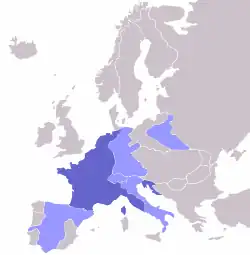 Французская империя достигла наибольших размеров и вместе с вассальными и союзными государствами включала в себя почти всю Западную Европу. В её состав входили, кроме Франции, Бельгия, Голландия и полоса северной Германии до Балтийского моря, с устьями Рейна, Эмса, Везера и Эльбы, так что французская граница лишь на двести вёрст отстояла от Берлина; далее, весь левый берег Рейна от Везеля до Базеля, некоторые части теперешней Швейцарии, наконец, Пьемонт, Тоскана и Папская область. Часть северной и средней Италии составляла королевство Италийское, где государем был Наполеон, а дальше, по другую сторону Адриатического моря, на Балканском полуострове, находилась принадлежавшая Наполеону Иллирия.