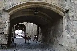 Собор святого Жюста, заложенный в 1272 году, так и не был достроен. Он знаменит необычайно высокими хорами и в целом следует образцу готических храмов севера Франции. Базилика святых Павла и Сергия — один из первых на юге Франции примеров готики. Дворец архиепископов был перестроен в XIX веке; от его средневекового предшественника сохранилось несколько мощных башен. В настоящее время во дворце размещён краеведческий музей.