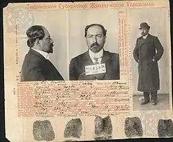 Карточка на Наримана Нариманова, составленная 8 (21) марта 1909 года Тифлисским губернским жандармским управлением