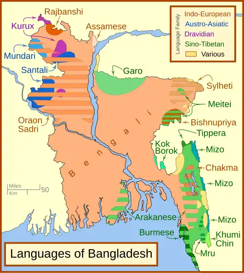 Бангладеш — моноэтническое государство, 98 % населения которого составляют бенгальцы. Около 89 % населения исповедует ислам, 10 % — индуизм.