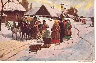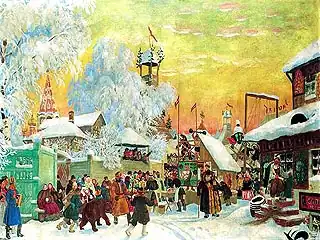 У русских народные гулянья молодёжи включали: прогуливание, хороводы и пляски, демонстрацию девушек-невест, подвижные уличные игры, качание на качелях, взаимное одаривание и совместное угощение во время праздничного застолья[6].